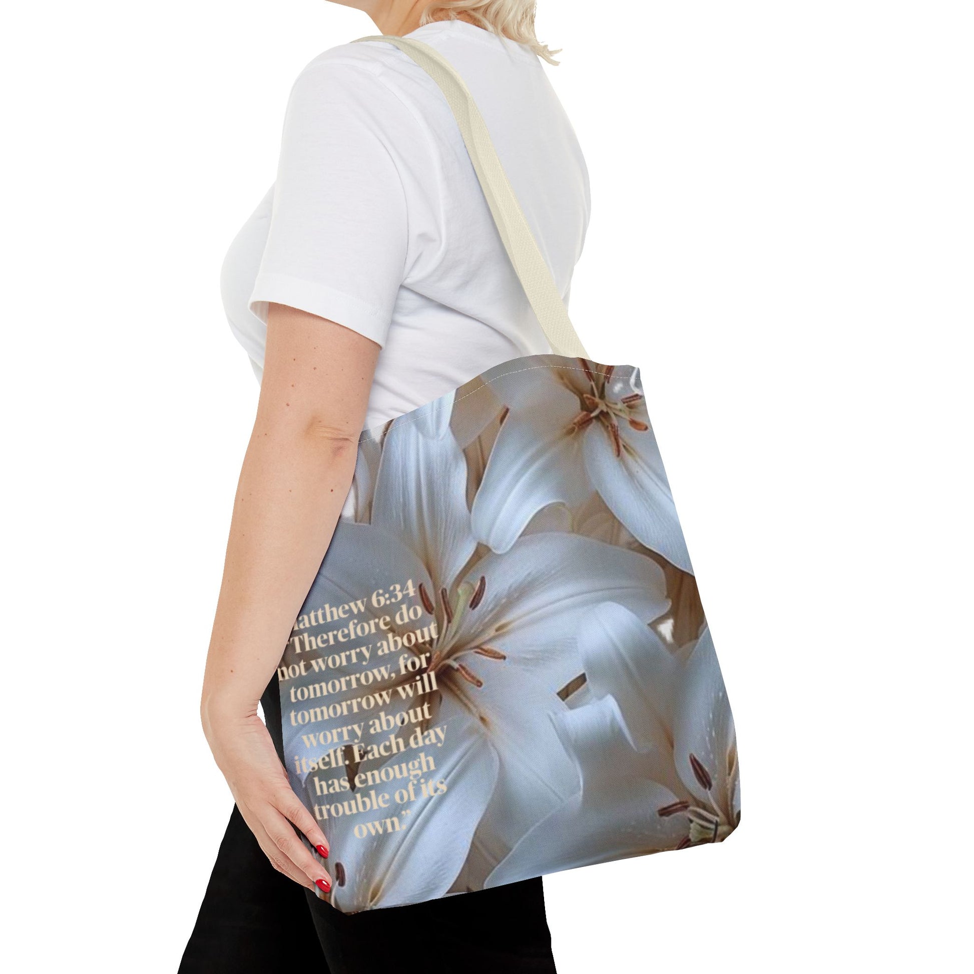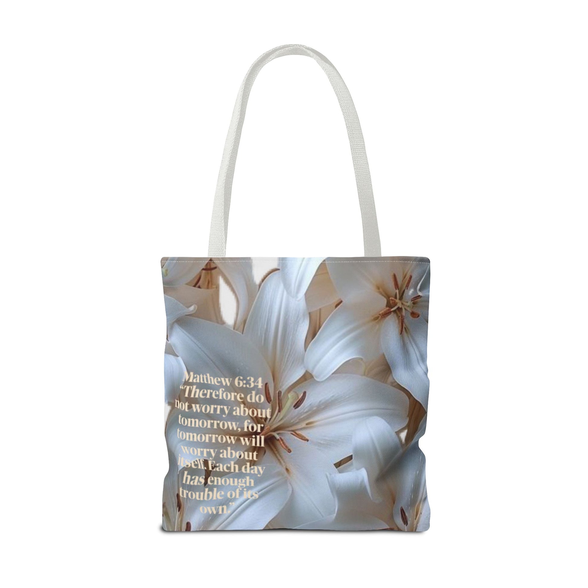 Don’t worry floral Tote Bag (Matthew 6:34)