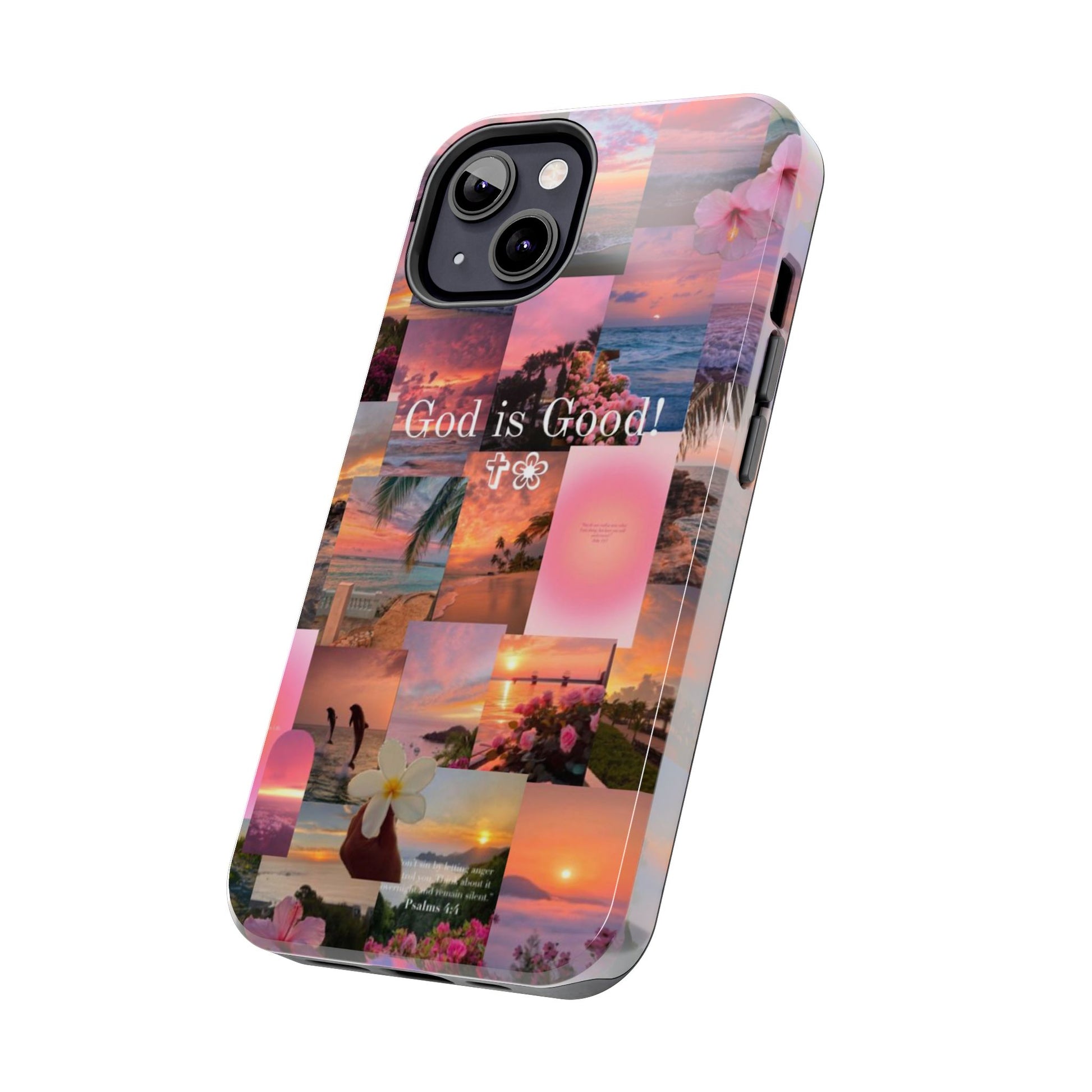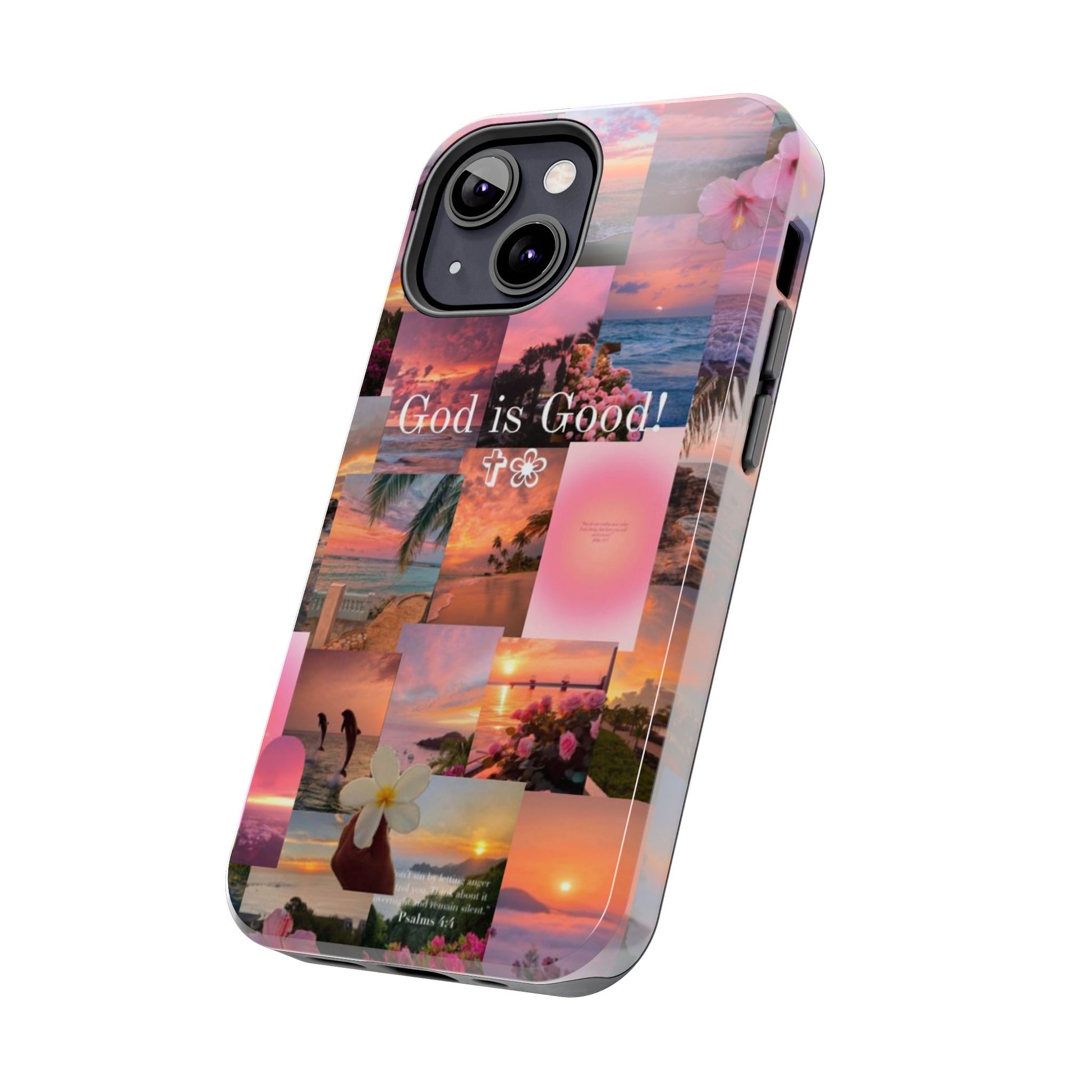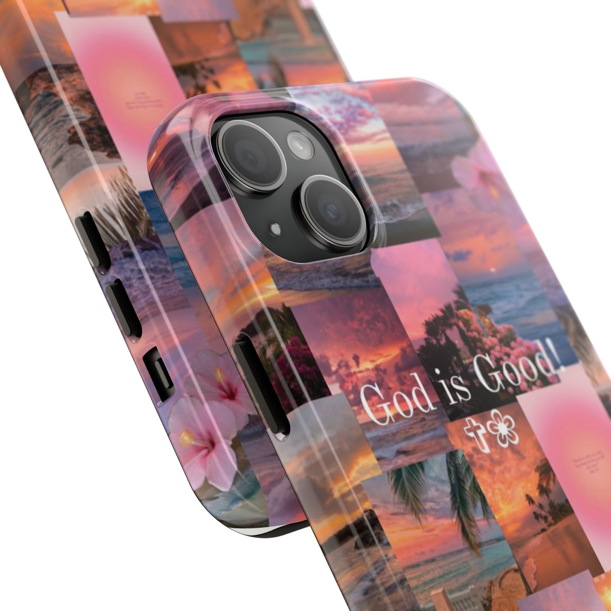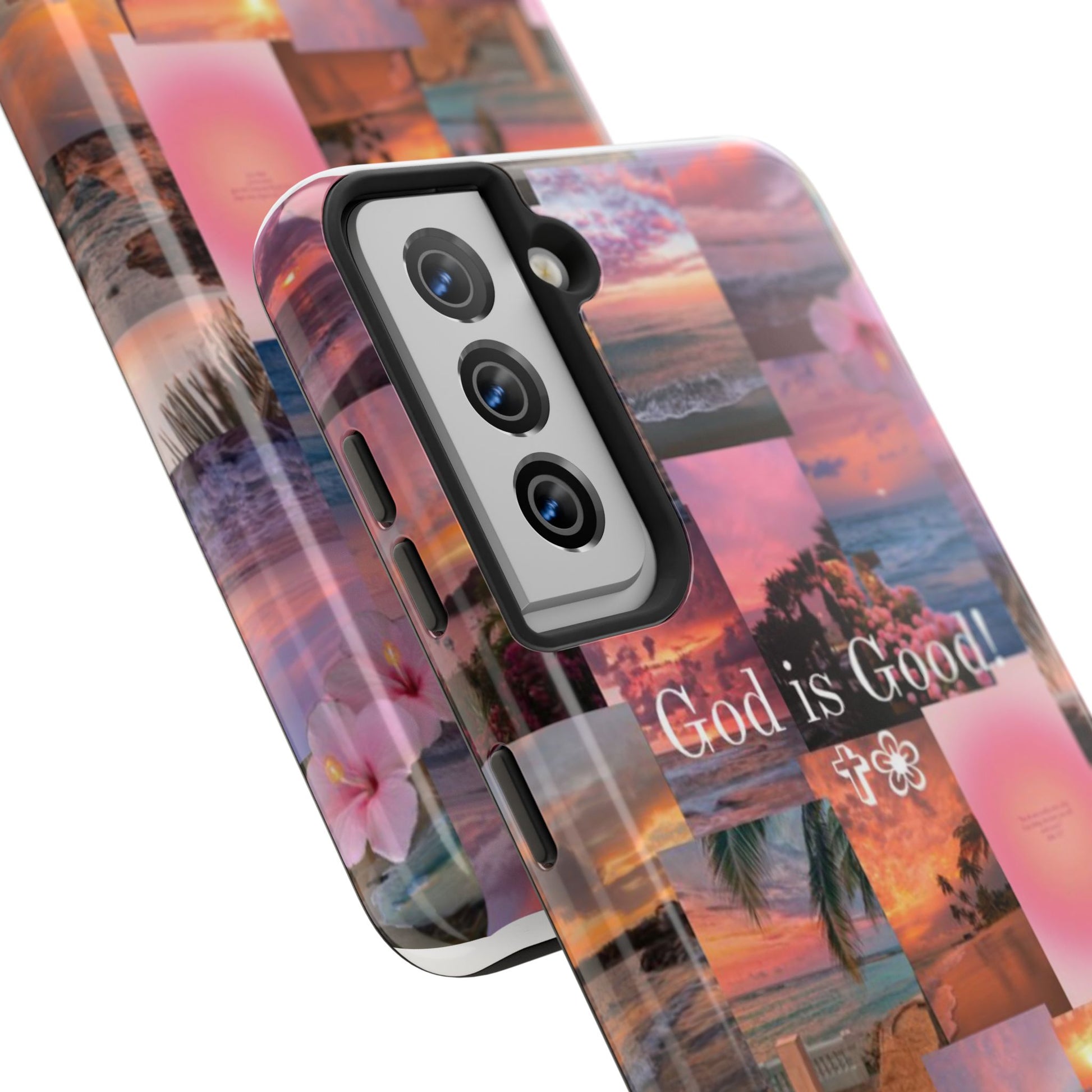 This tropical sunset-themed phone case reminds you to stay grounded in gratitude, no matter the season. With pastel ocean views, blooming florals, and the bold phrase “God is Good!” front and center, this case protects your phone while speaking life over your day.