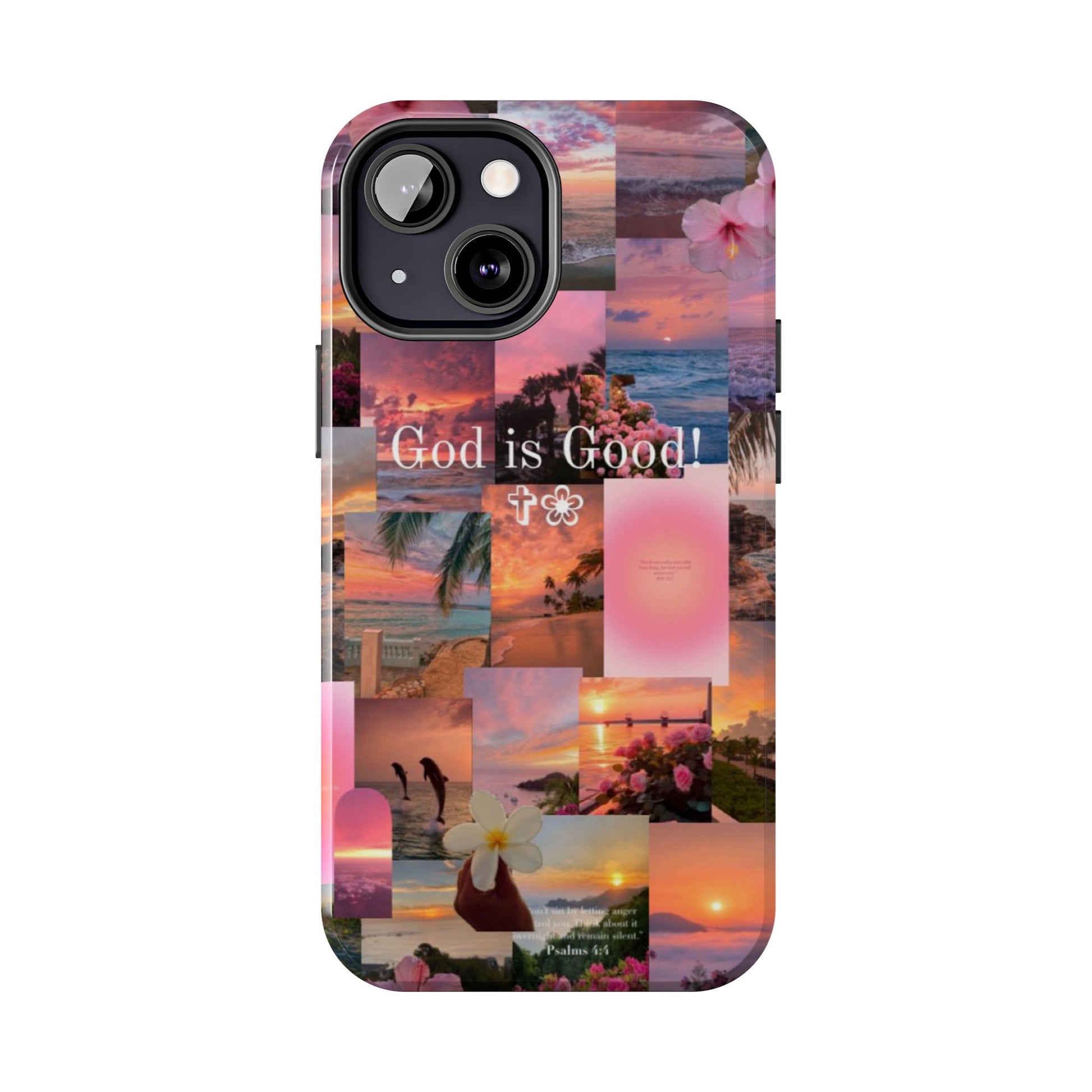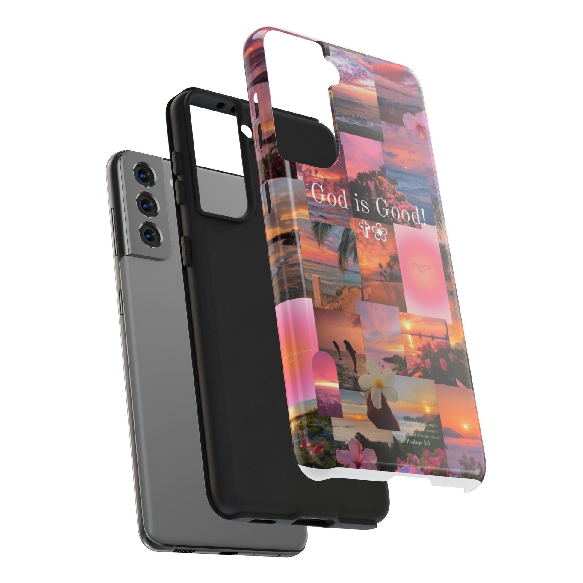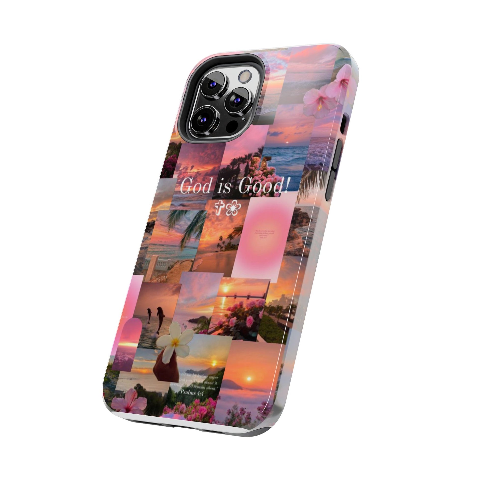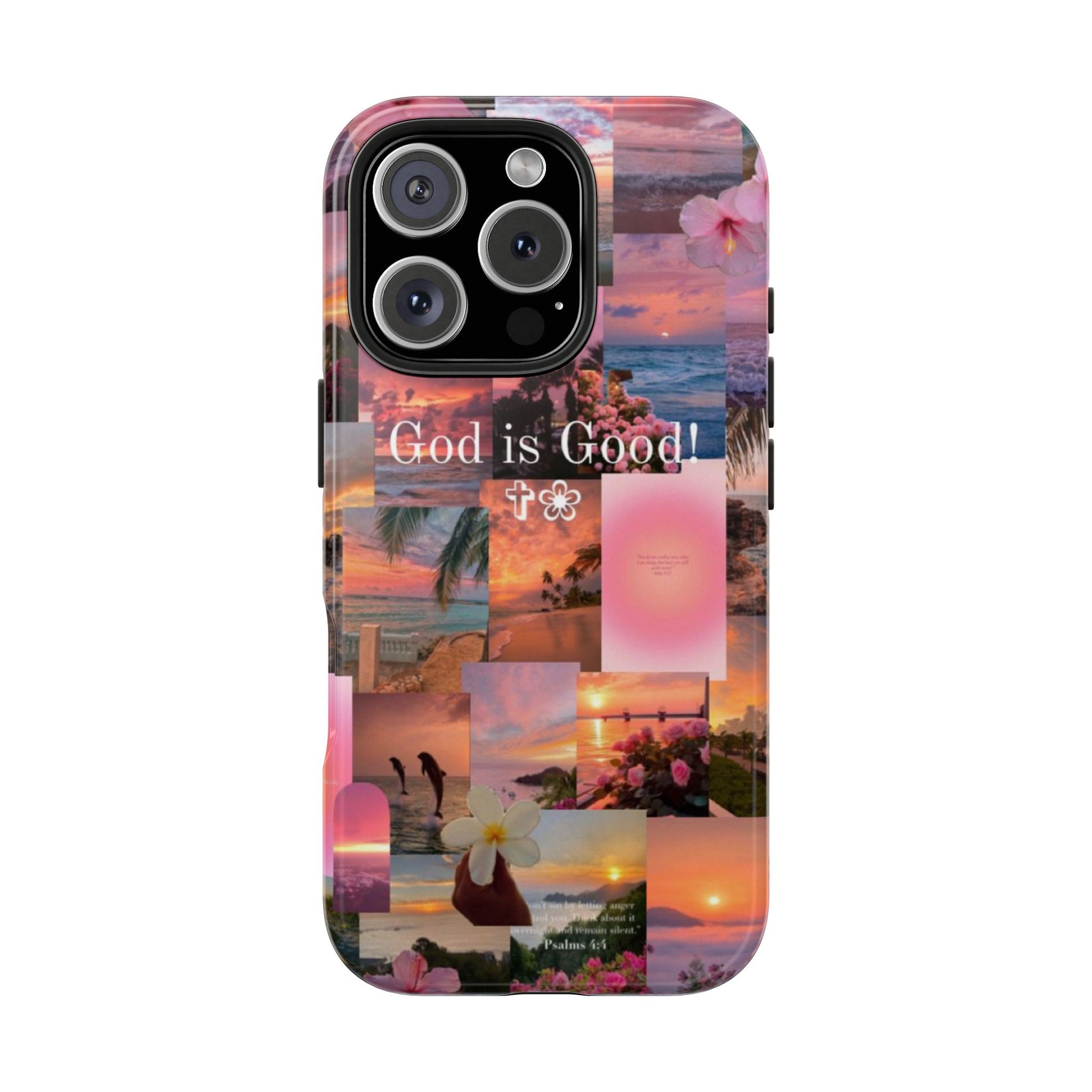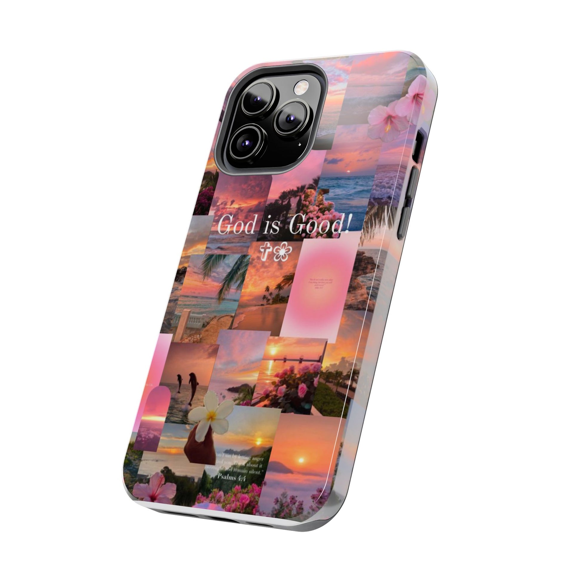 This tropical sunset-themed phone case reminds you to stay grounded in gratitude, no matter the season. With pastel ocean views, blooming florals, and the bold phrase “God is Good!” front and center, this case protects your phone while speaking life over your day.