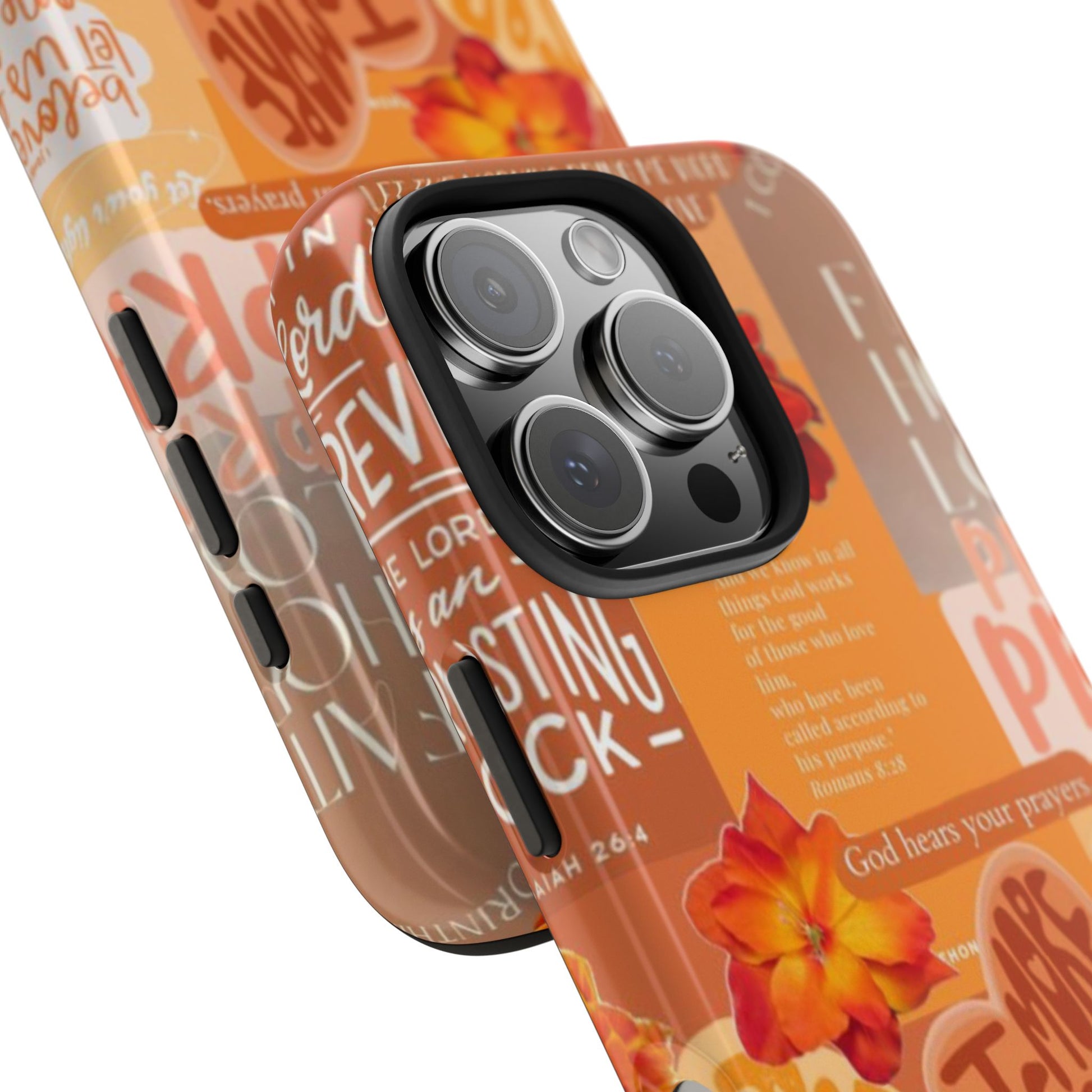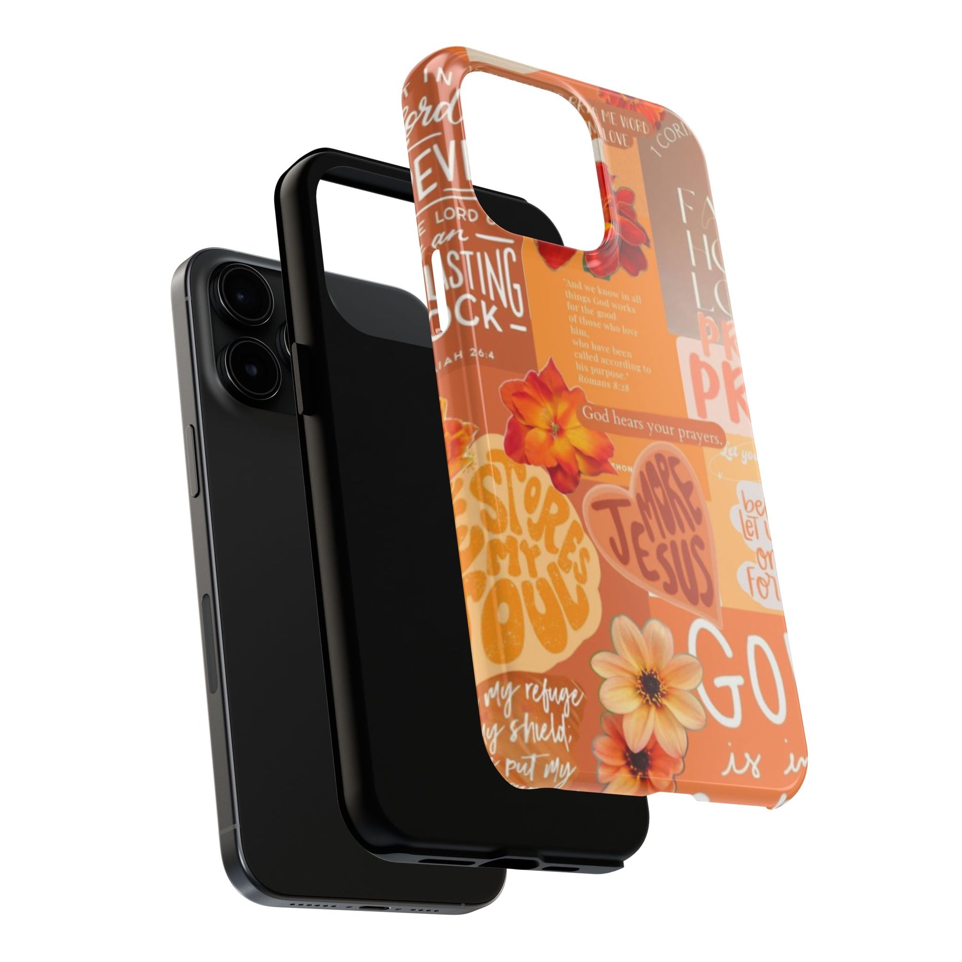 This vibrant orange scripture case is the perfect daily reminder that God is still in control. With messages like “More Jesus,” “Pray,” and “God hears your prayers,” this case keeps your focus where it belongs on truth, trust, and bold belief.