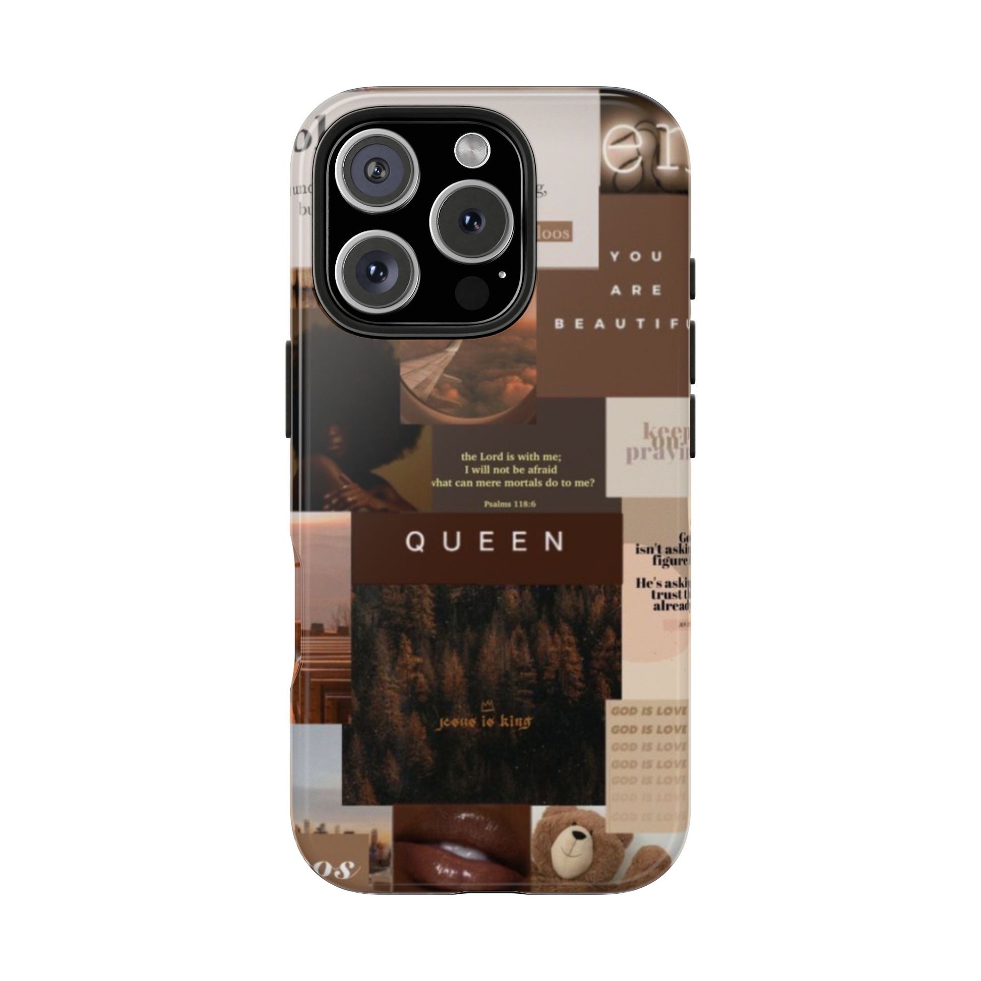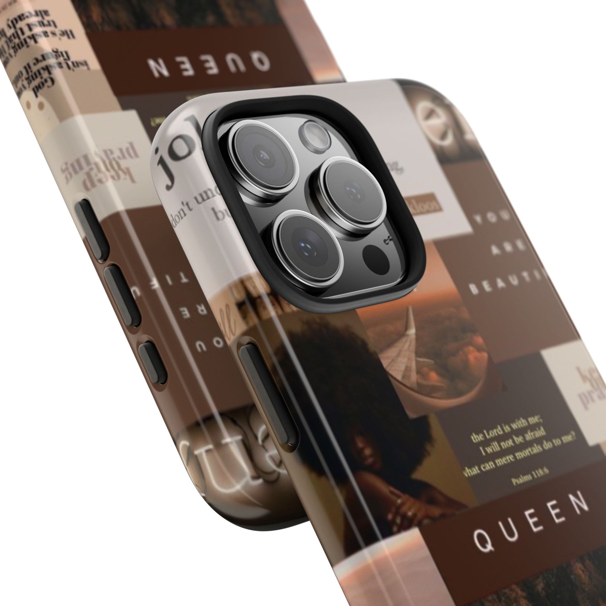 This rich-toned, collage-style Christian case is packed with scriptures, beauty, and bold declarations of faith. From “Jesus is King” to “Spirit lead me,” every detail reminds you to trust God’s timing, walk in your authority, and never forget: you are royalty.