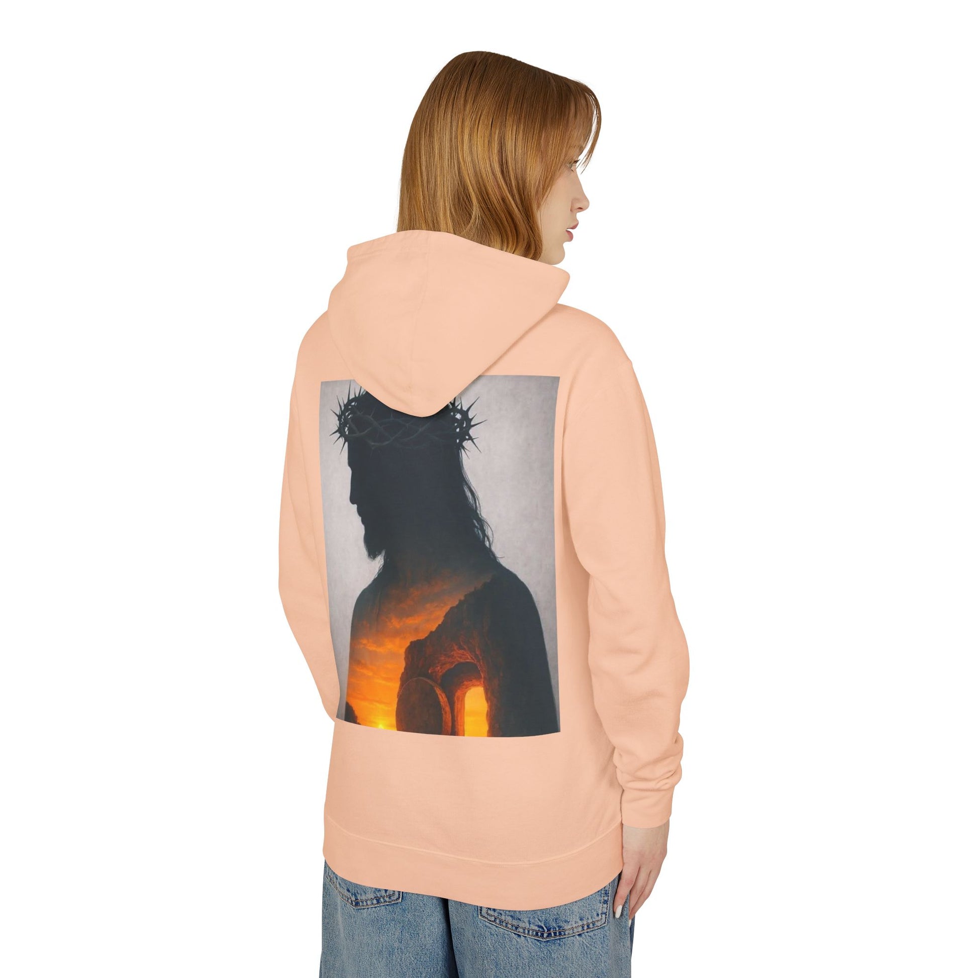 Declare the truth with every step you take. The “Jesus Is King” hoodie blends bold simplicity with visual impact. The front reads “jesus is king” in clean black print, while the back features a powerful silhouette of Christ wearing the crown of thorns layered with a radiant image of the empty tomb at sunrise.