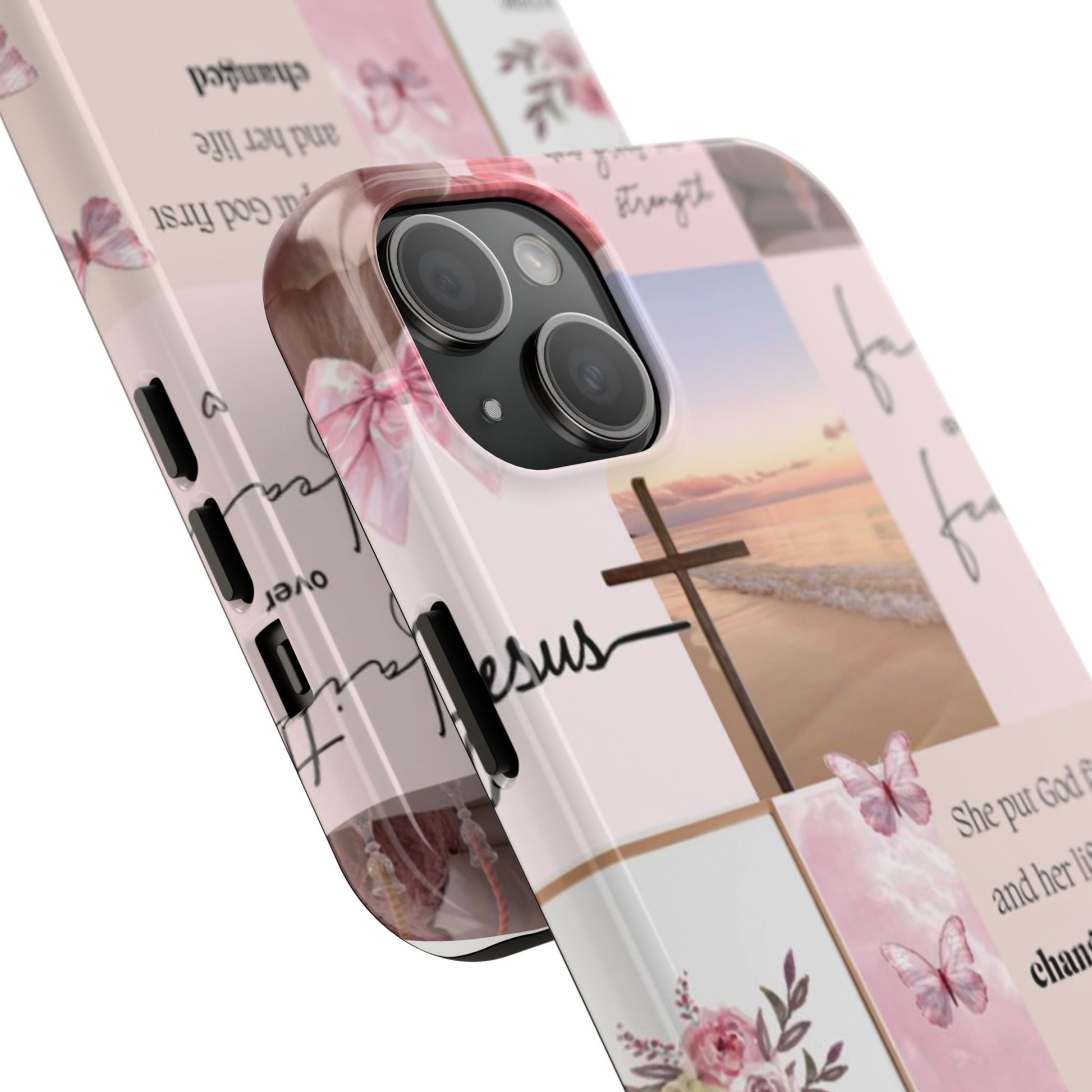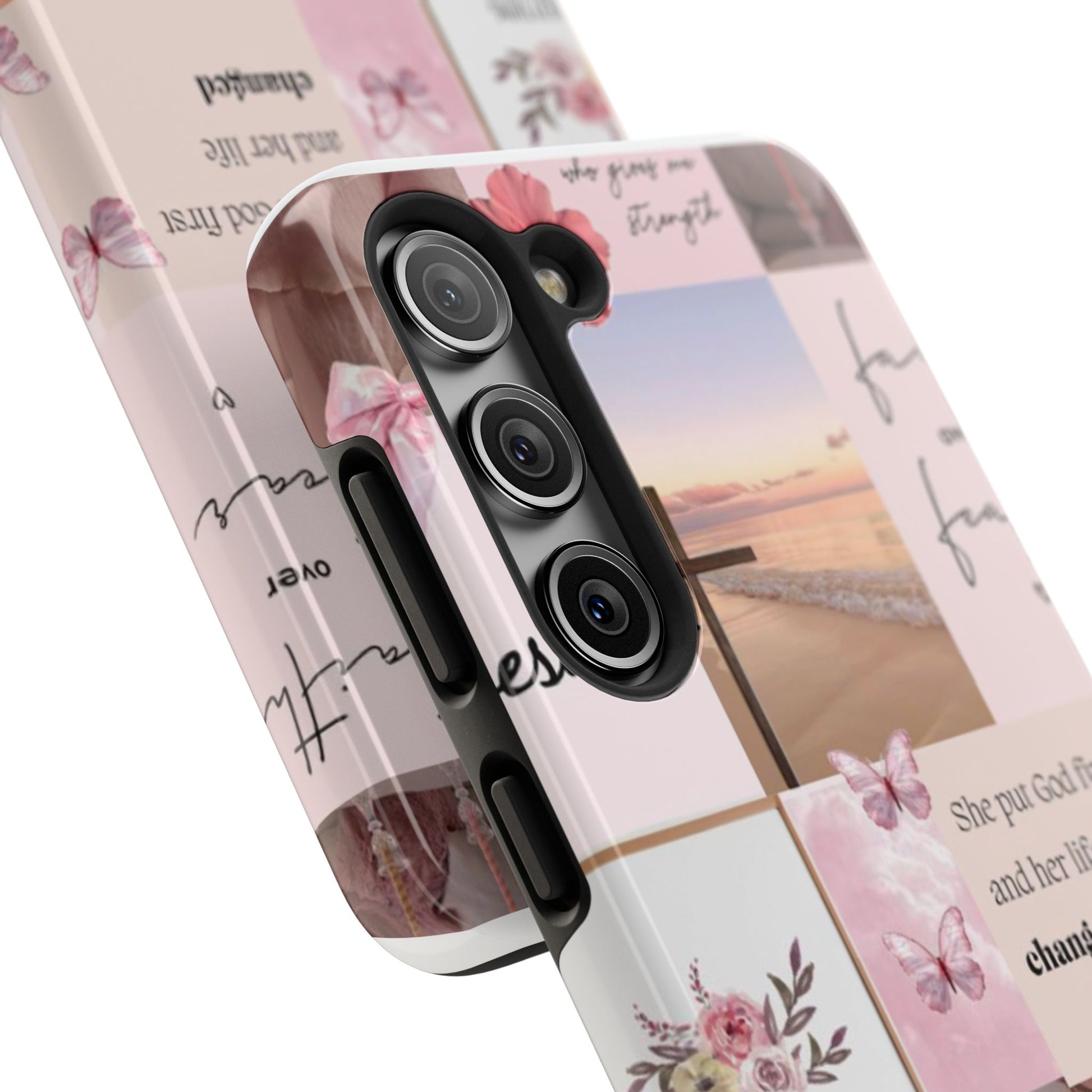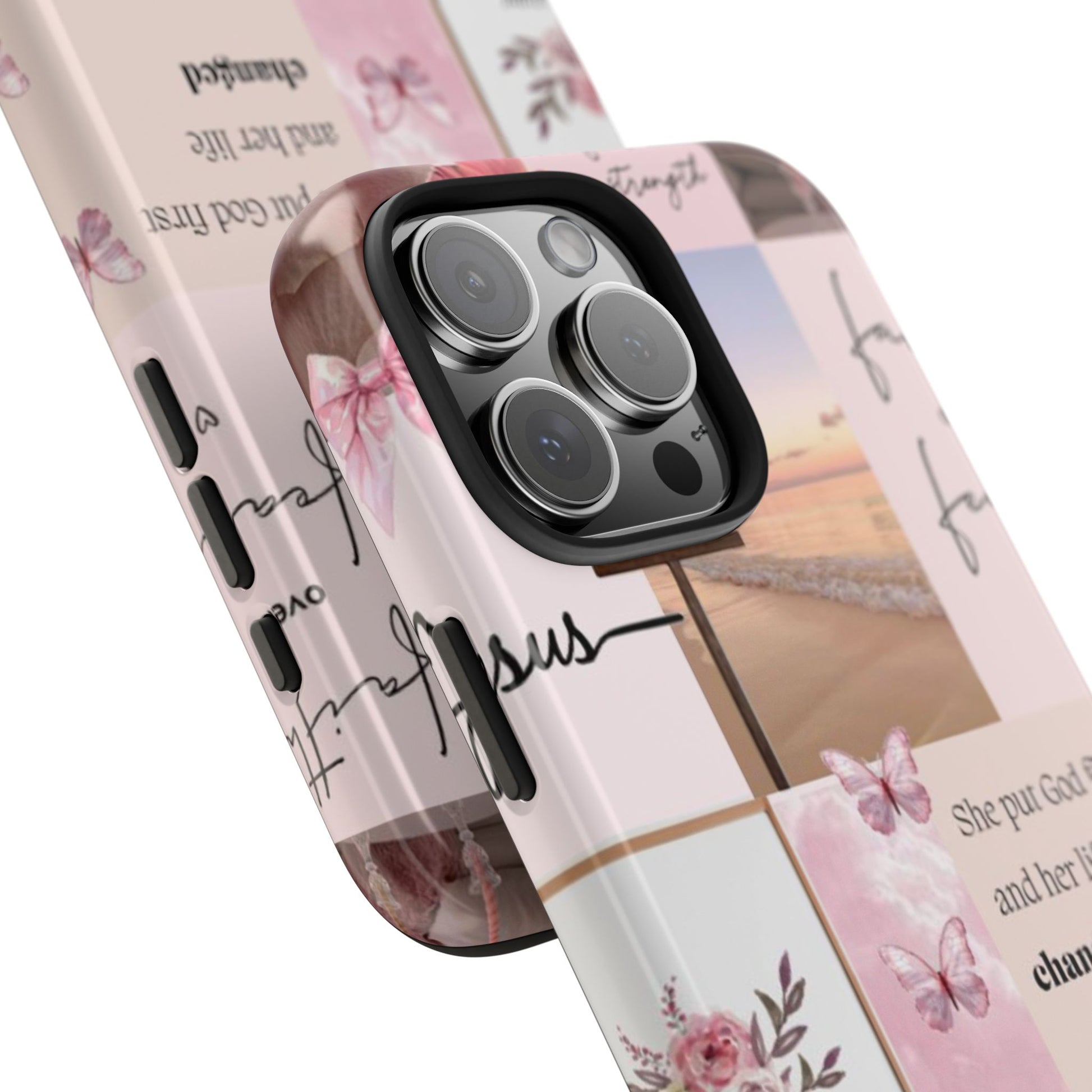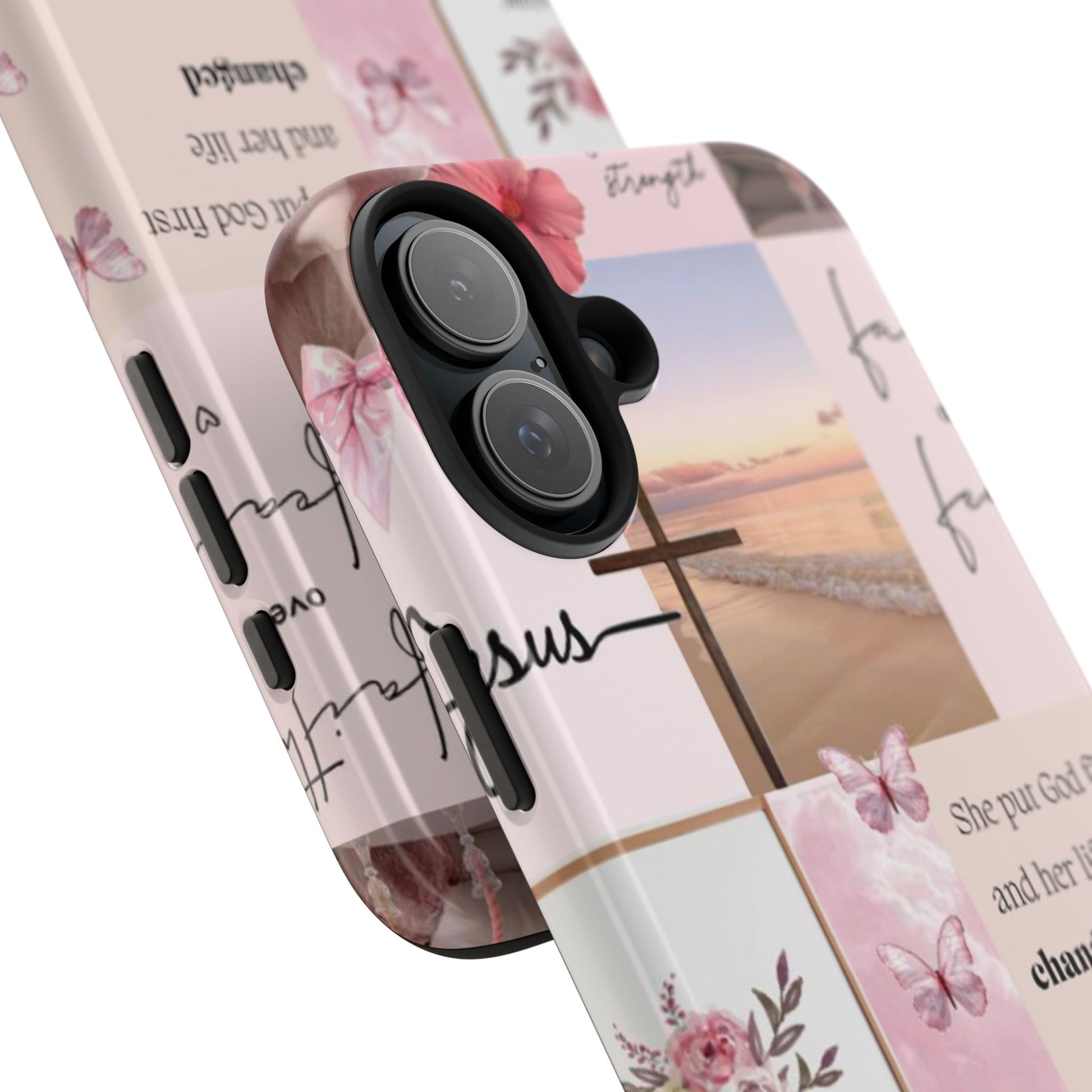 With a pink aesthetic and quotes like “She put God first and her life changed” and “Stop touching the fire you prayed God to put out,” this design speaks to the woman in transformation growing, healing, and resting in God’s plan.