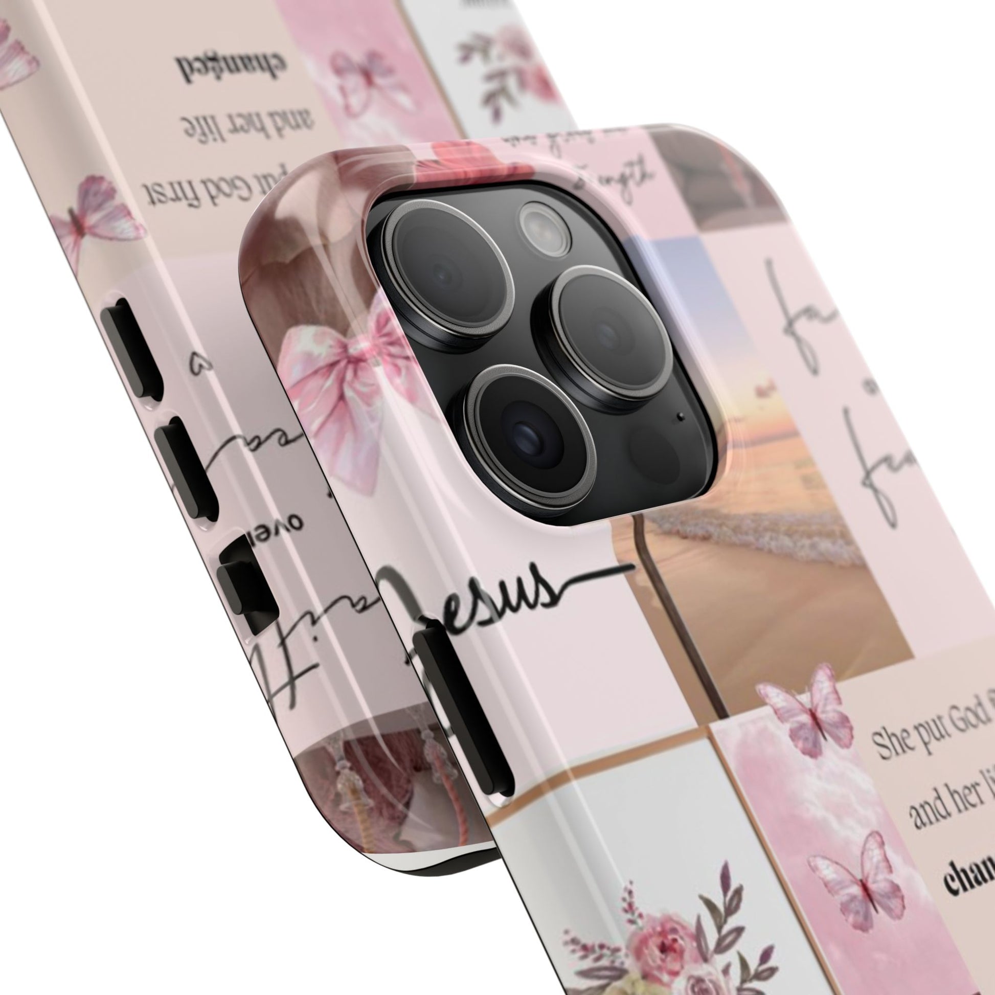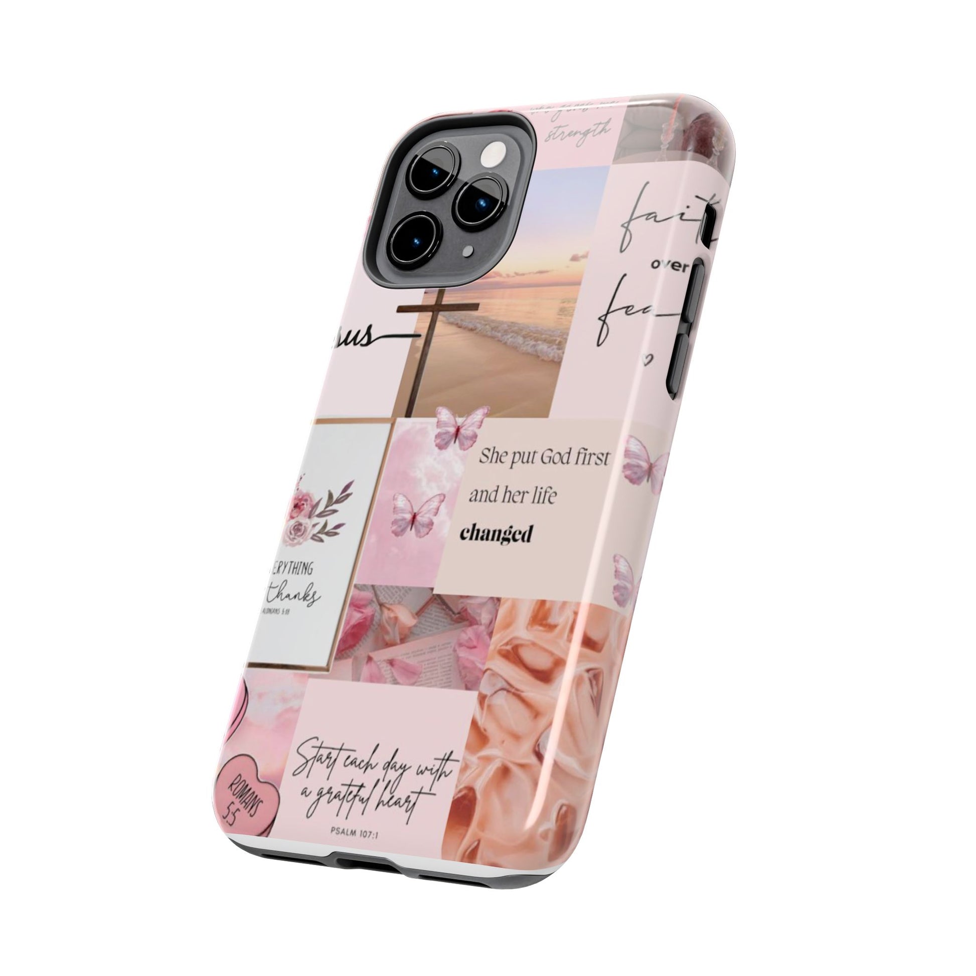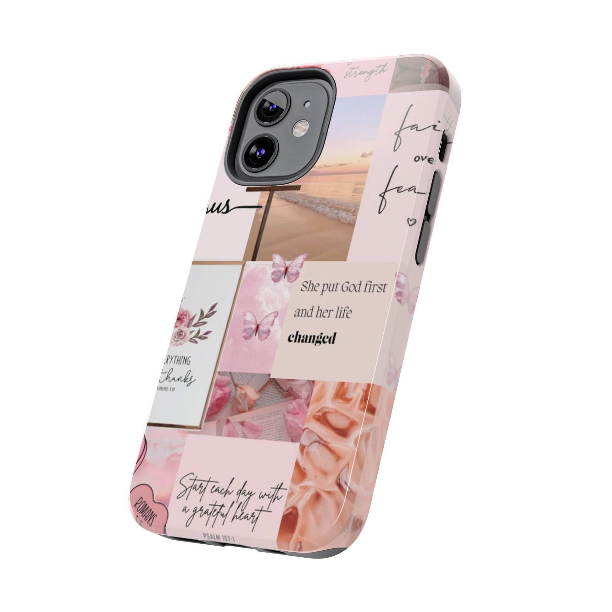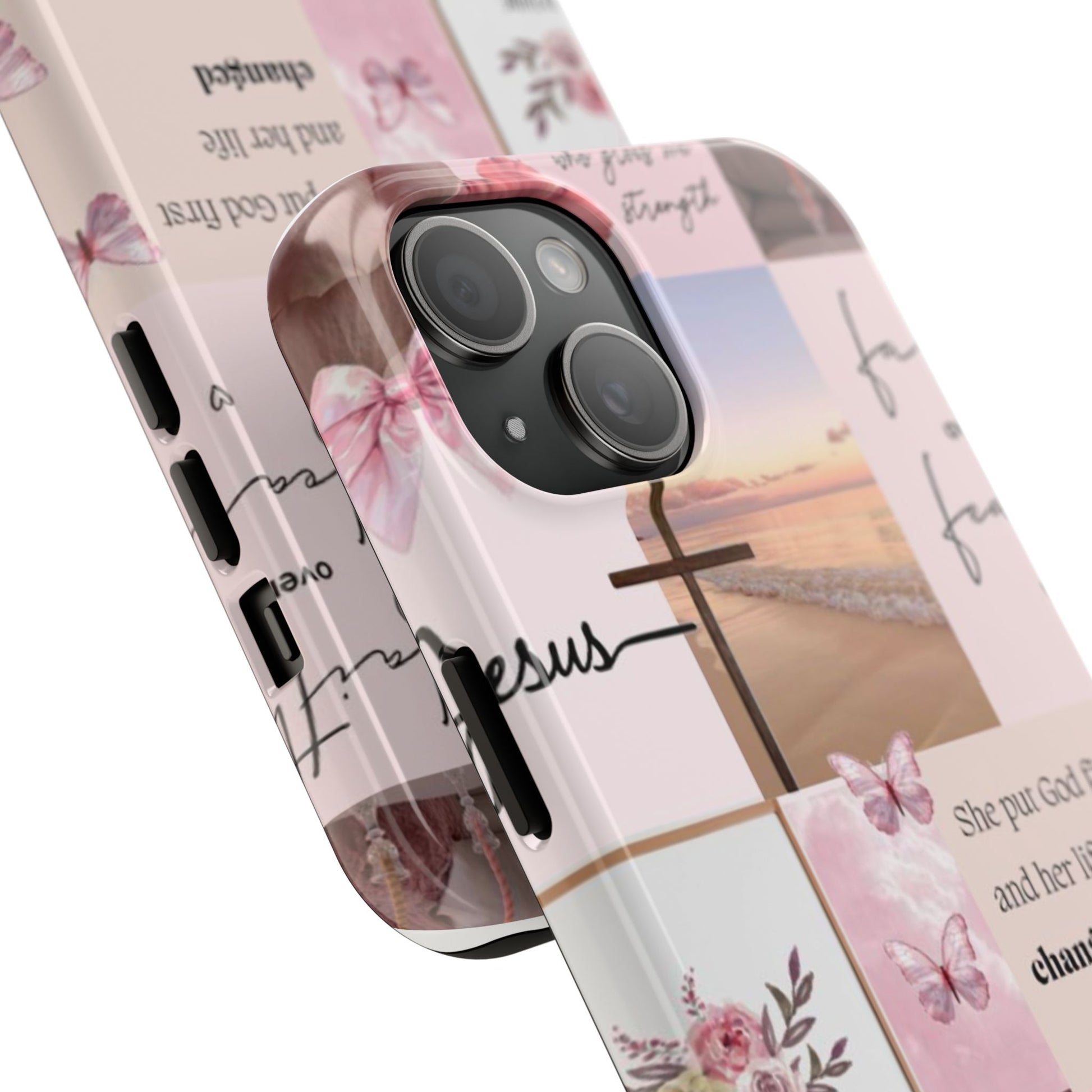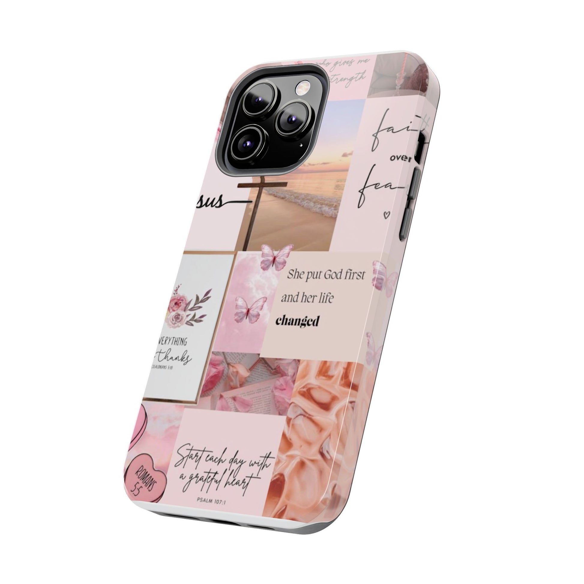 With a pink aesthetic and quotes like “She put God first and her life changed” and “Stop touching the fire you prayed God to put out,” this design speaks to the woman in transformation growing, healing, and resting in God’s plan.