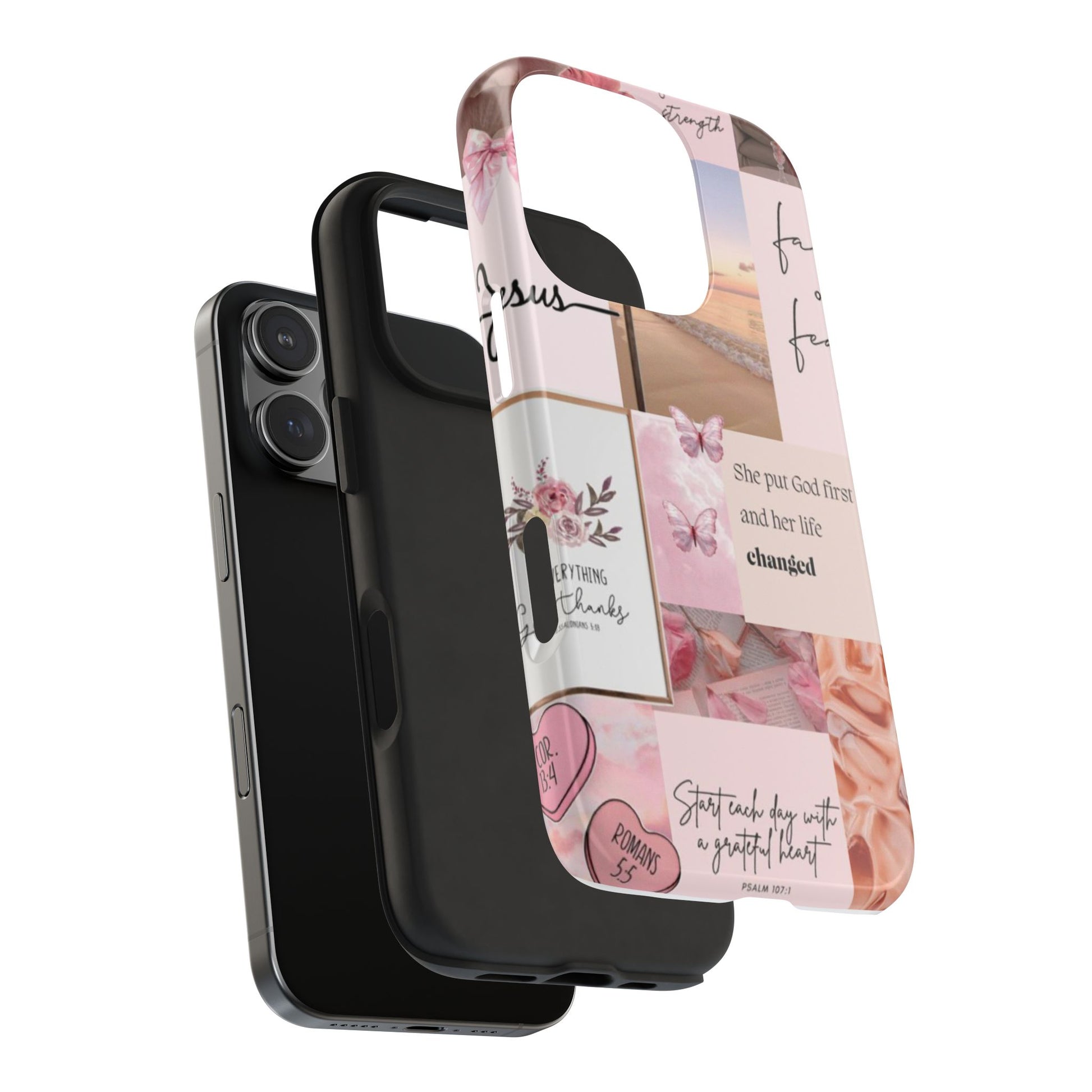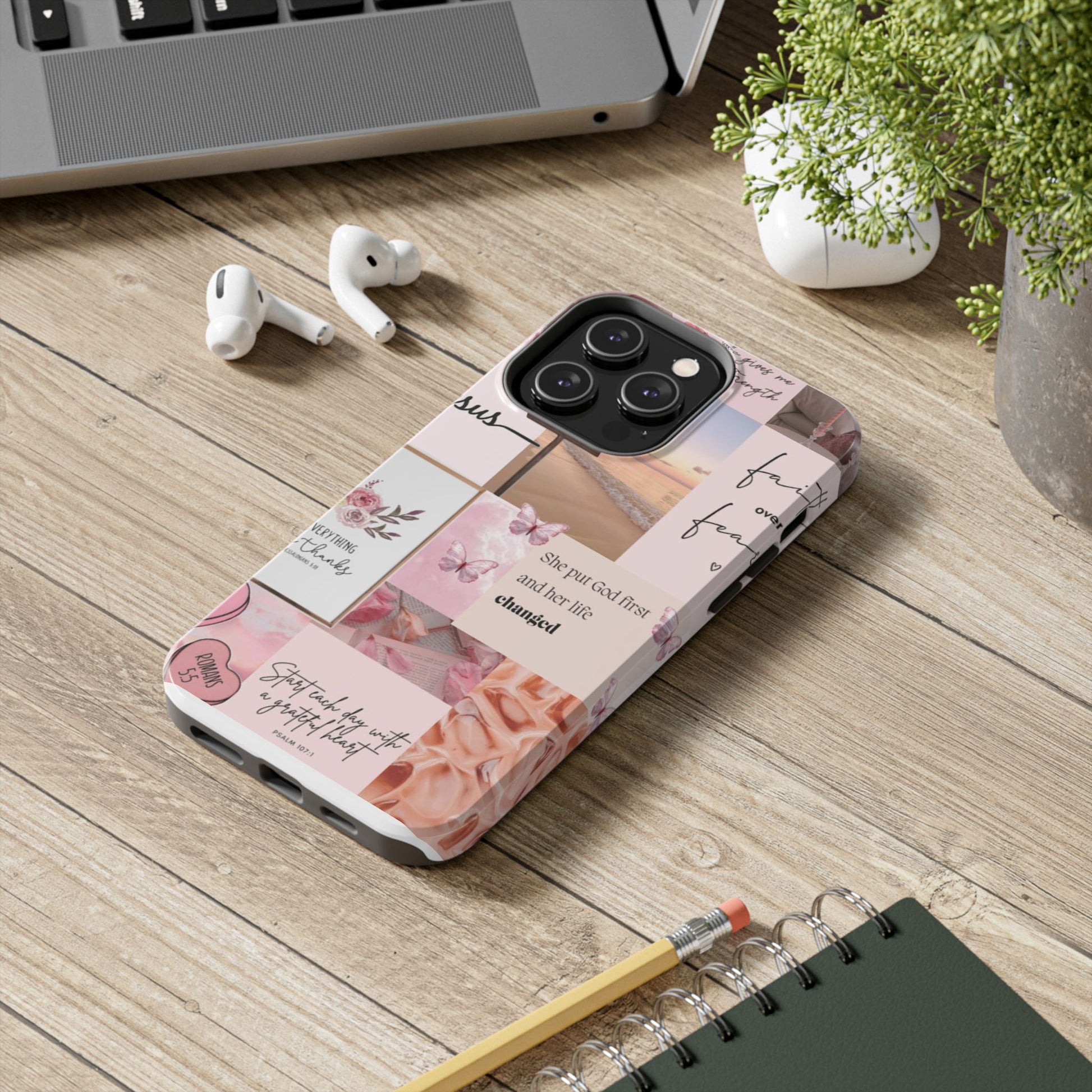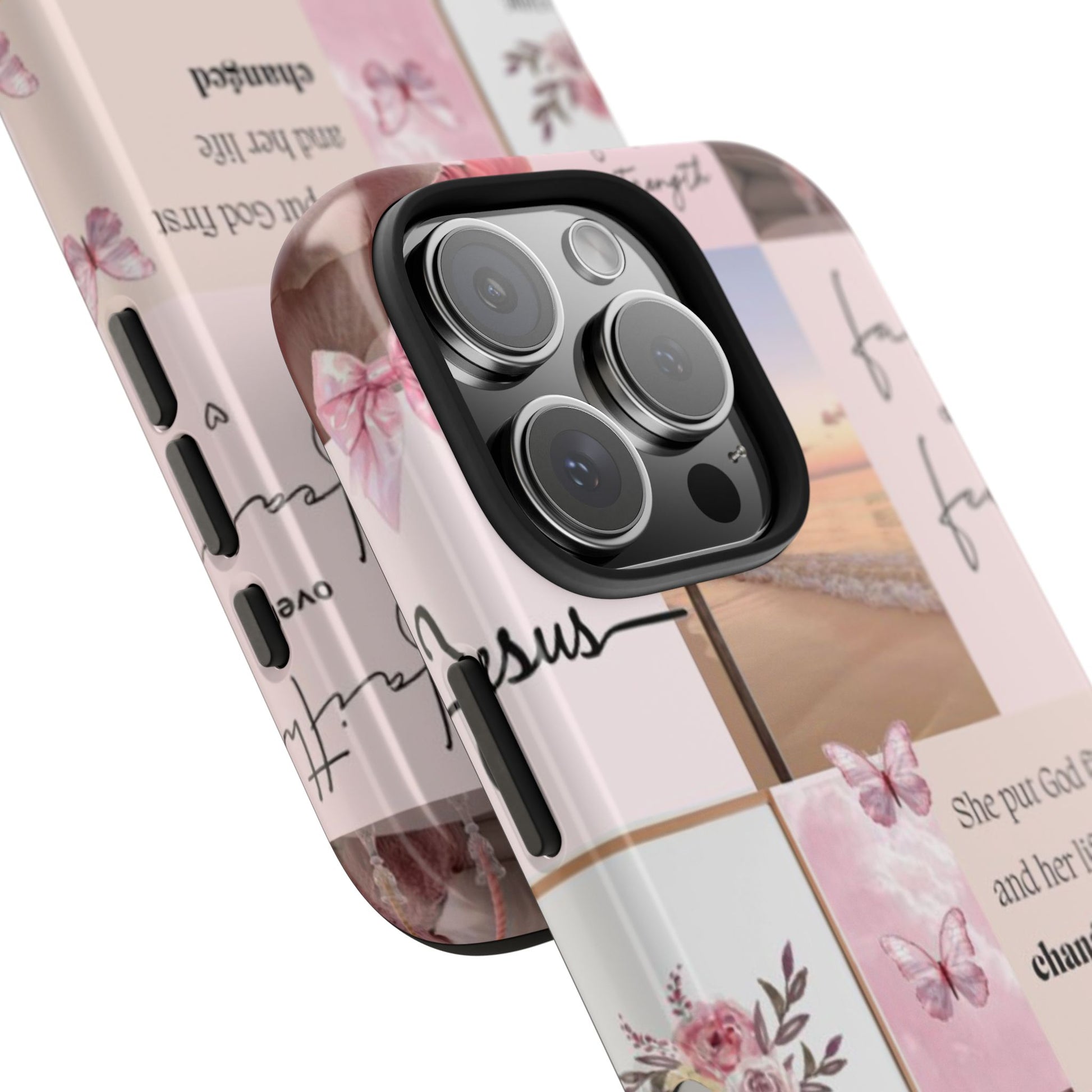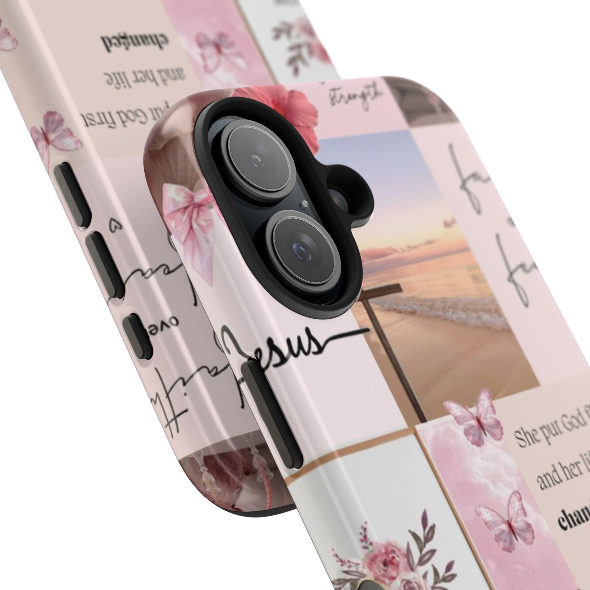 With a pink aesthetic and quotes like “She put God first and her life changed” and “Stop touching the fire you prayed God to put out,” this design speaks to the woman in transformation growing, healing, and resting in God’s plan.