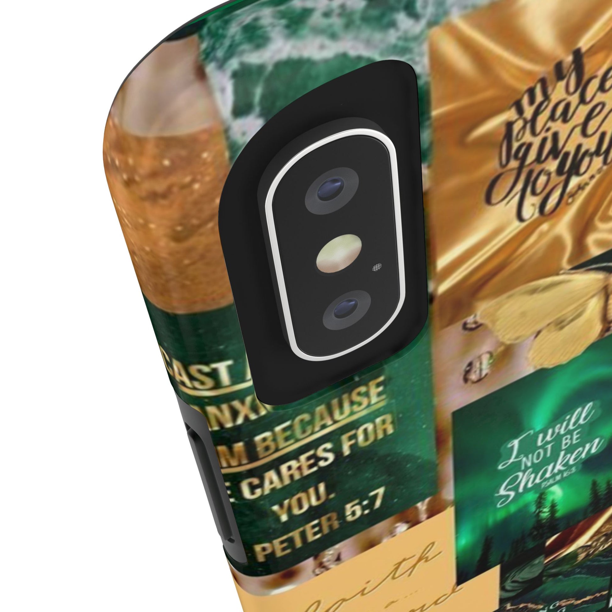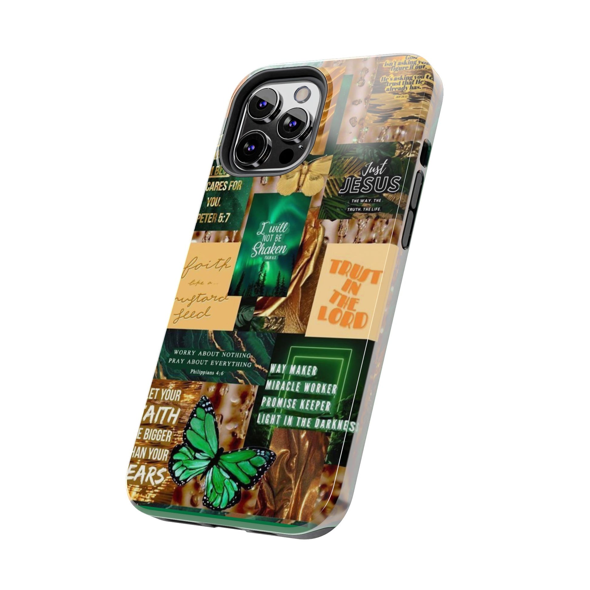 Faith isn’t just what you say it’s what you carry. This bold green and gold scripture collage phone case is designed to inspire confidence, remind you of God’s promises, and keep you grounded in truth no matter what life brings.